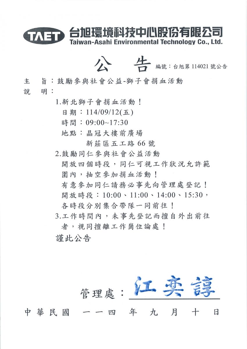 台旭環境科技中心同仁熱情響應~ 捐血一袋,救人一命!