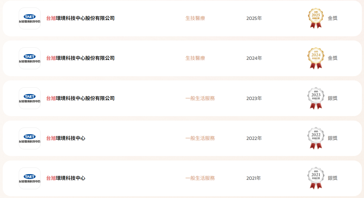 台旭環境科技中心 入選 1111人力銀行幸福企業 - 生技醫療類「金獎」